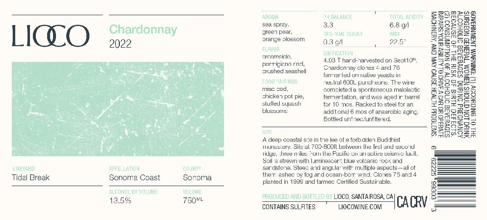 2022 Chardonnay – Tidal Break Vineyard, Sonoma Coast